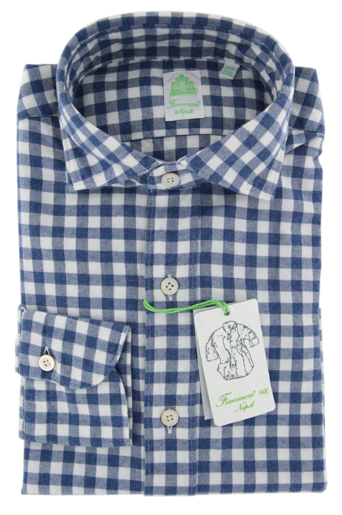 Finamore Napoli Blue Flannel Shirt - Extra Slim