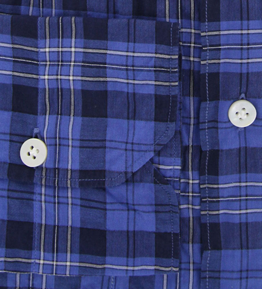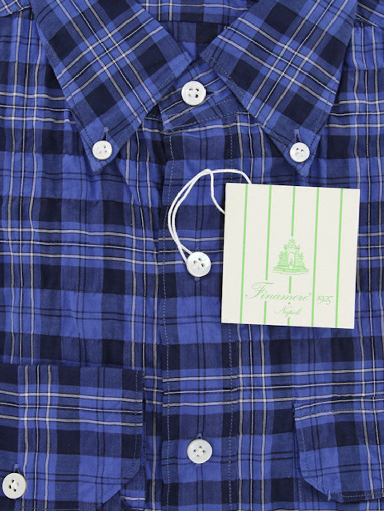 Finamore Napoli Blue Plaid Cotton Plain Weave Shirt 15.75/40