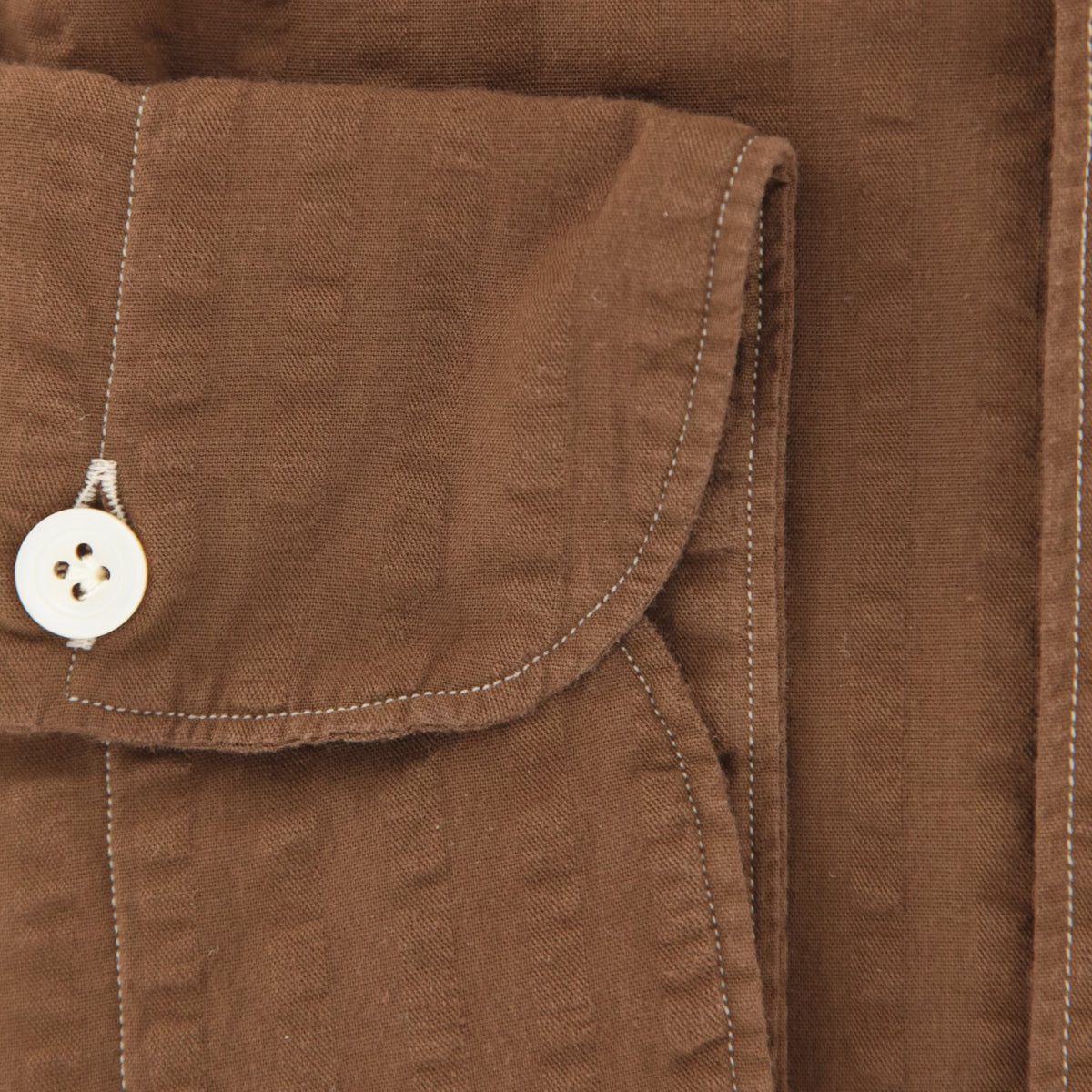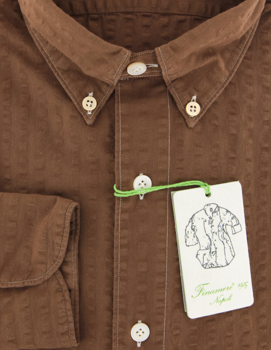 Finamore Napoli Brown Seersucker Shirt - Extra Slim
