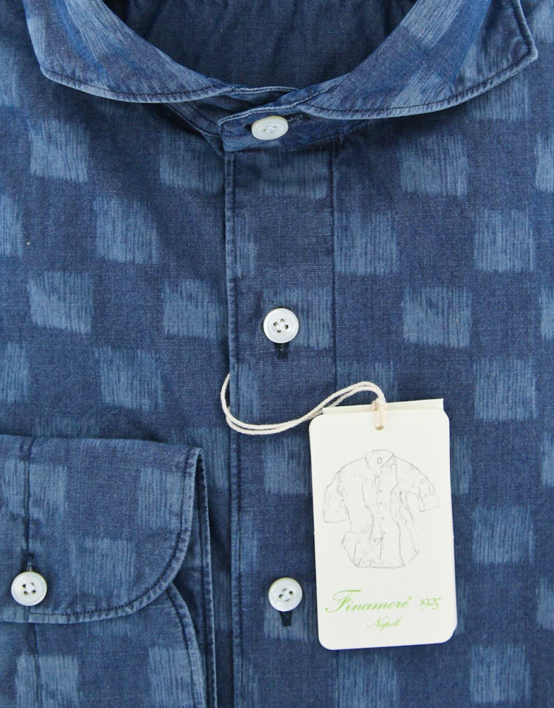 Finamore Napoli Denim Blue Shirt - Extra Slim - 15 US / 38 EU