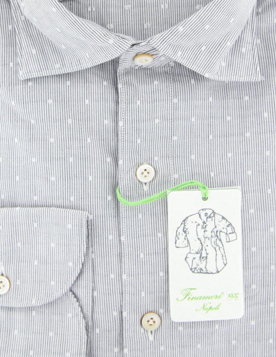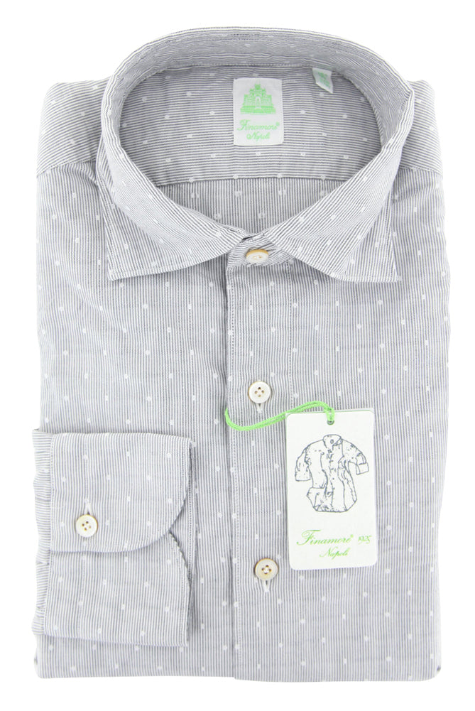 Finamore Napoli White Polka Dot Shirt - Extra Slim