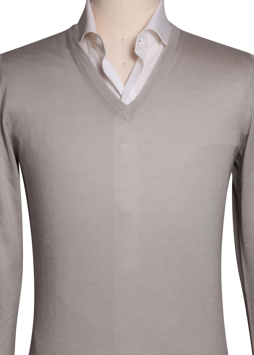 Fiori Di Lusso Light Gray V-Neck Sweater