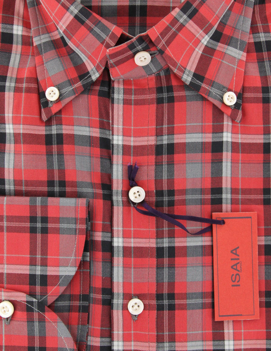 Isaia Red Popover Shirt - Slim