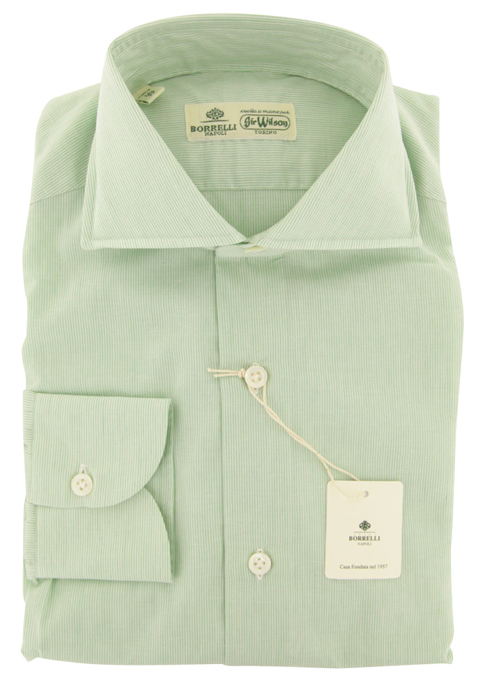 Luigi Borrelli Green Striped Cotton Shirt - Slim - 14.5/37 - (ZN)