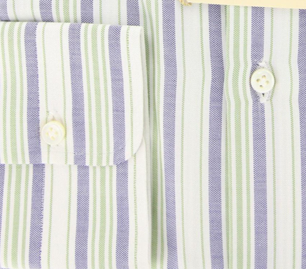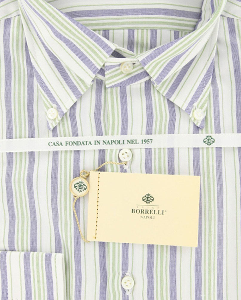 Luigi Borrelli Green Striped Cotton Shirt - Slim - 15/38 - (GB5930)